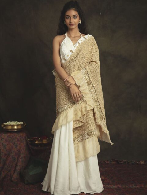 MIDUSHI BAJORIA Embellished Embroidered Beads and Stone Tissue Maheshwari Saree