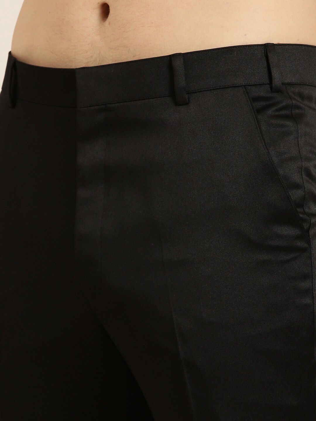White solid trousesr, has an elasticated waistband with belt loops and zip closure
