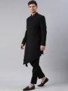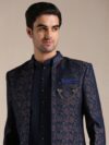 Black self-design sherwani set
