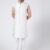 White embroidered sherwani, has a mandarin collar, open front, long sleeves, and multiple slits