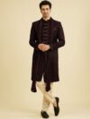 Embroidered Mandarin Collar Pure Silk Sherwani Set