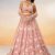 Rose gold and white embroidered lehenga choli with dupatta, sequinned