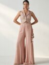 Embroidered Shoulder Strap Neck Top With Trouser Co-Ords With Shrug