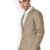 Beige solid regular-fit blazer, has a notched lapel collar, single-breasted with button closure, long sleeves, one welt pocket, two flap pockets, and double vented back hem