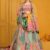 Peach-coloured and blue embellished lehenga choli with dupatta, mirror work