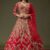 Red and gold-toned embellished lehenga choli with dupatta, sequinned