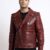 Brown solid water resistant leather jacket, has a spread collar, 3 pockets ,has a zip closure, long sleeves, straight hemline, cotton lining