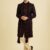 Purple & Maroon embroidered sherwani, has a mandarin collar, stylized wrap-over front with button closures, long sleeves, one welt pocket and multiple slits