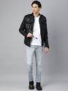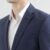 Navy blue solid slim-fit casual blazer, has a notched lapel, long sleeves, single-breasted with double button closure, two flap pockets, one welt pocket and a double-vented back hem