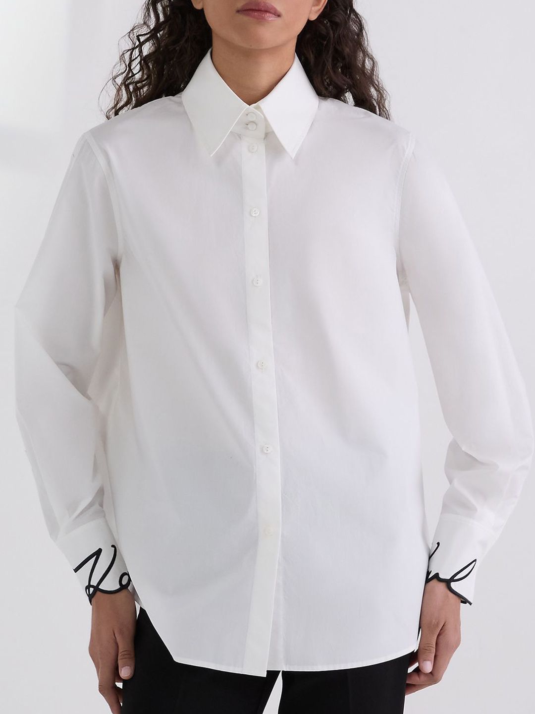 White solid opaque Casual shirt ,has a spread collar, button placket, no pocket, long regular sleeves, curved hem