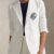 White solid slim-fit casual blazer, has a notched lapel, long sleeves, single-breasted with double button closure, three pocket, signature logo crest patch at the chest pocket and a single-vented back hem