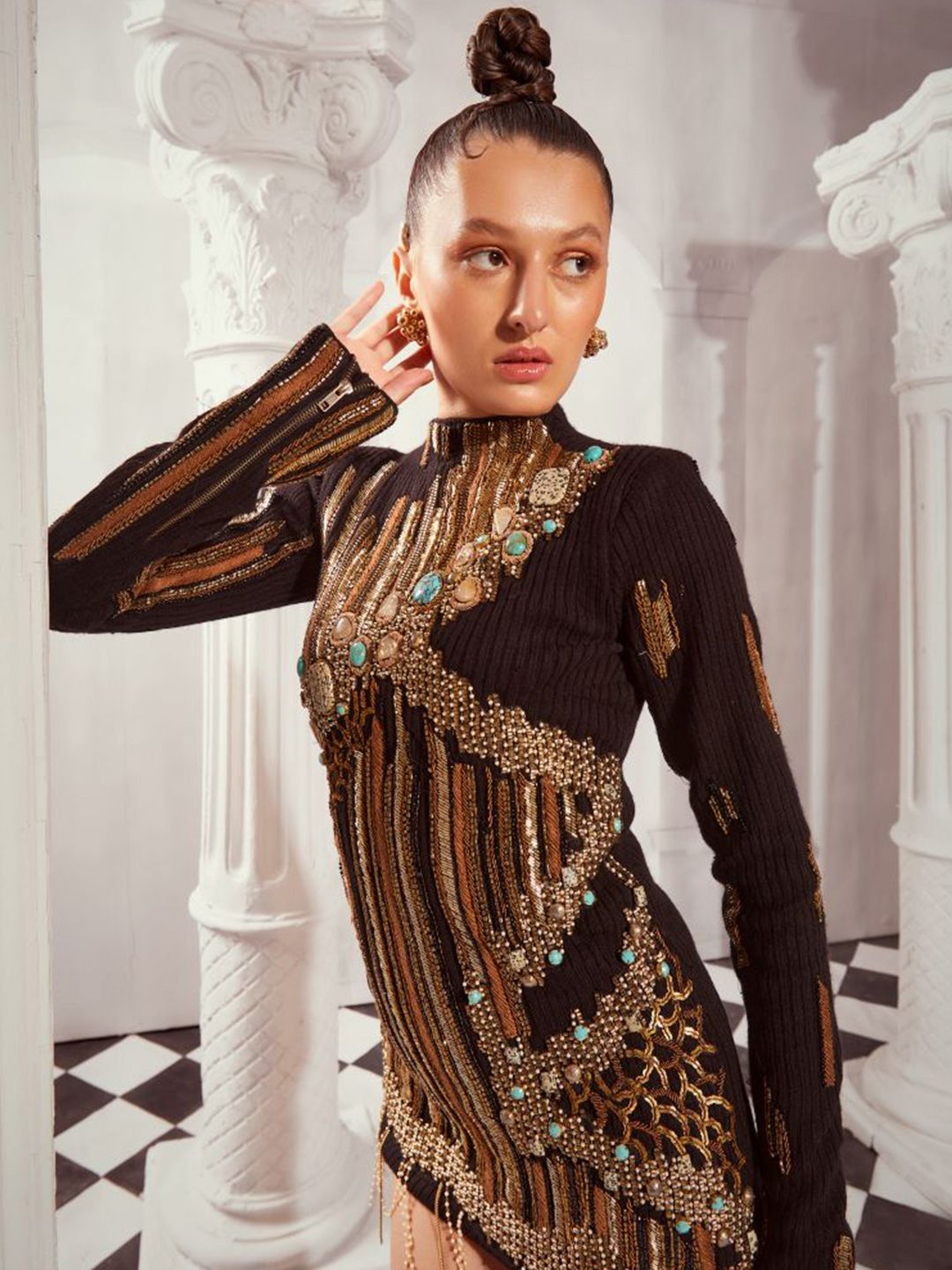 Add to cartPrint Long Sleeves High Neck Maxi Dress