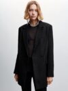 Black and multicoloured floral pinted regular fit party blazer, has a shawl collar, long sleeves, open-front collar, two flap pockets, two pockets and a single-vented back