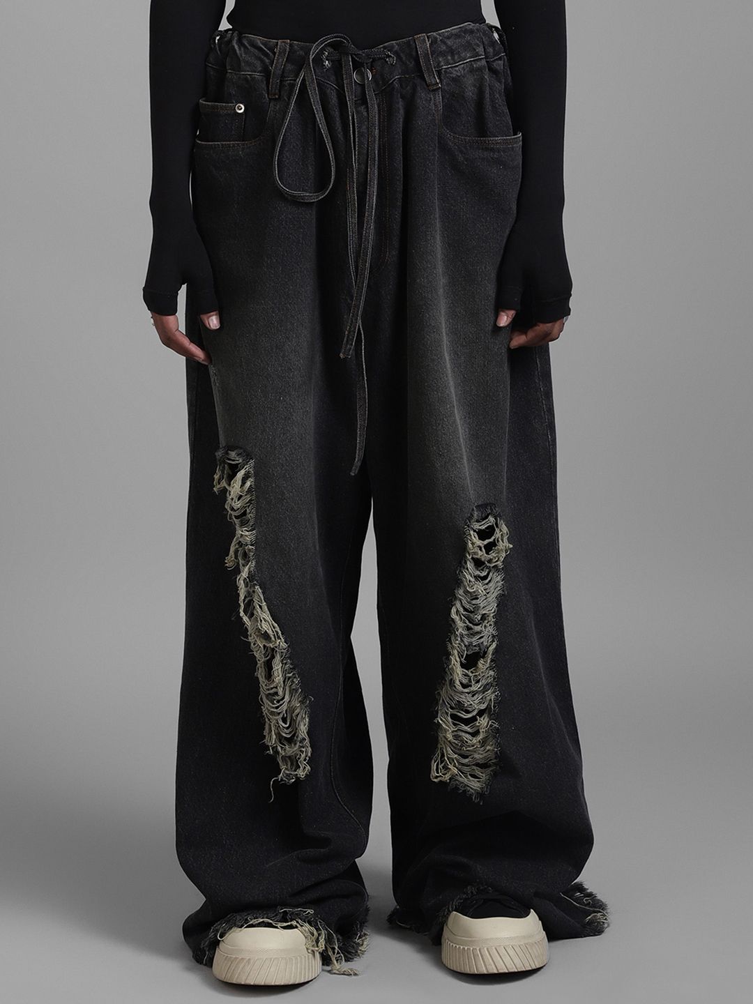 - Baggy, mid-rise