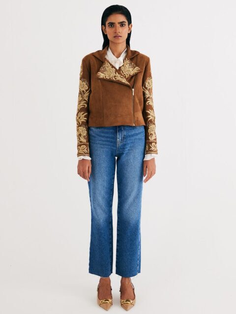 Add to cartWomen Floral Embroidered Suede Biker Jacket