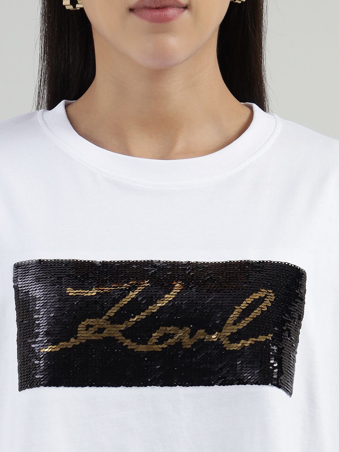 White & Black t-shirt for women Graphic Regular length Round neck Three-quarter, Drop-shoulder sleeves Knitted