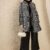 Grey animal printed open front jacket, has a collarless, 2 pockets ,has a snap button closure, long sleeves, straight hemline, viscose rayon lining