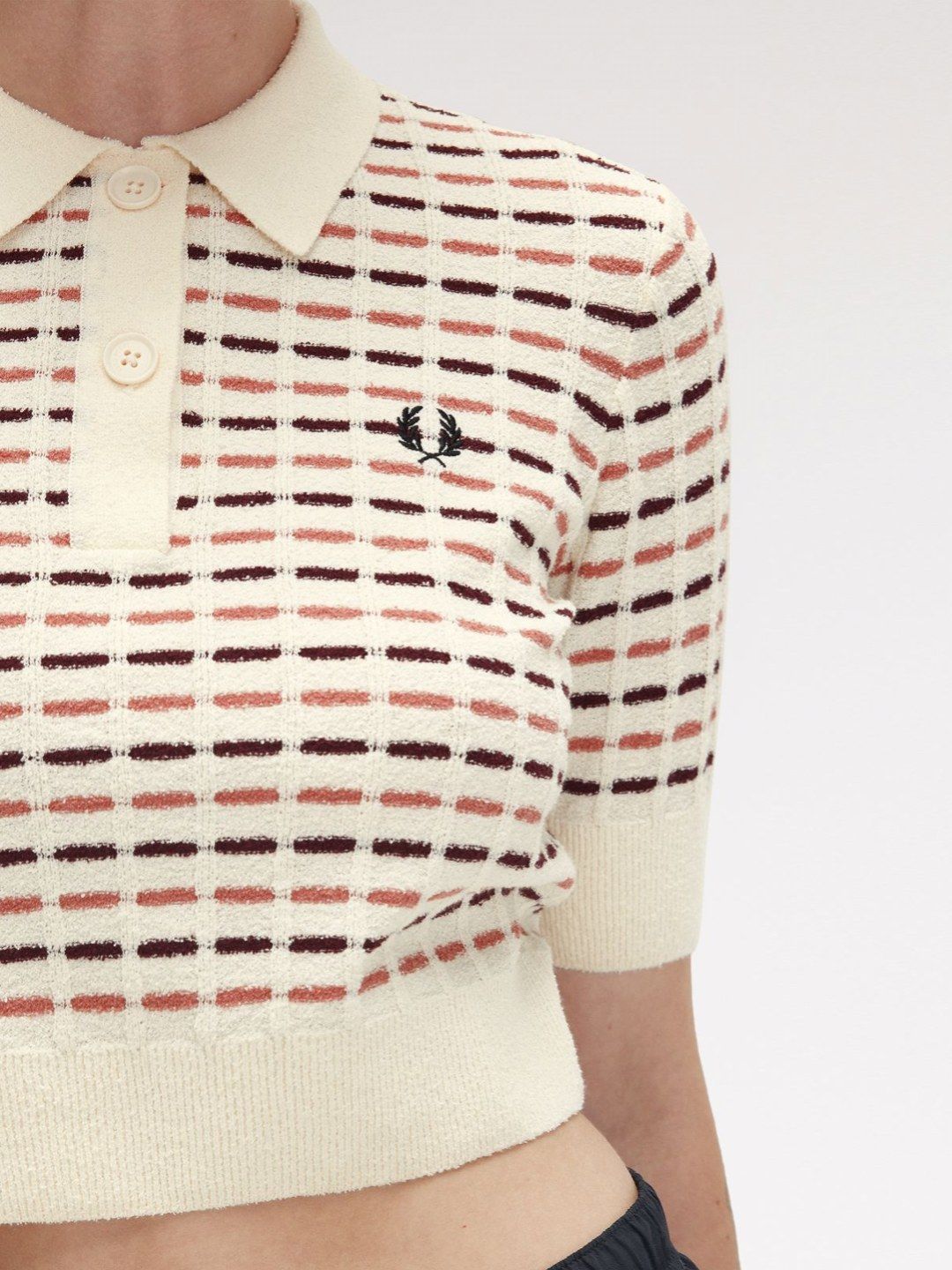 Add to cartWomen Printed Crochet Slim Fit Polo Collar Crop T-shirt