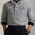 Grey, off-white & navy blue self design typography applique shirt ,has a spread collar, long sleeves, half placket button closure with straight hem